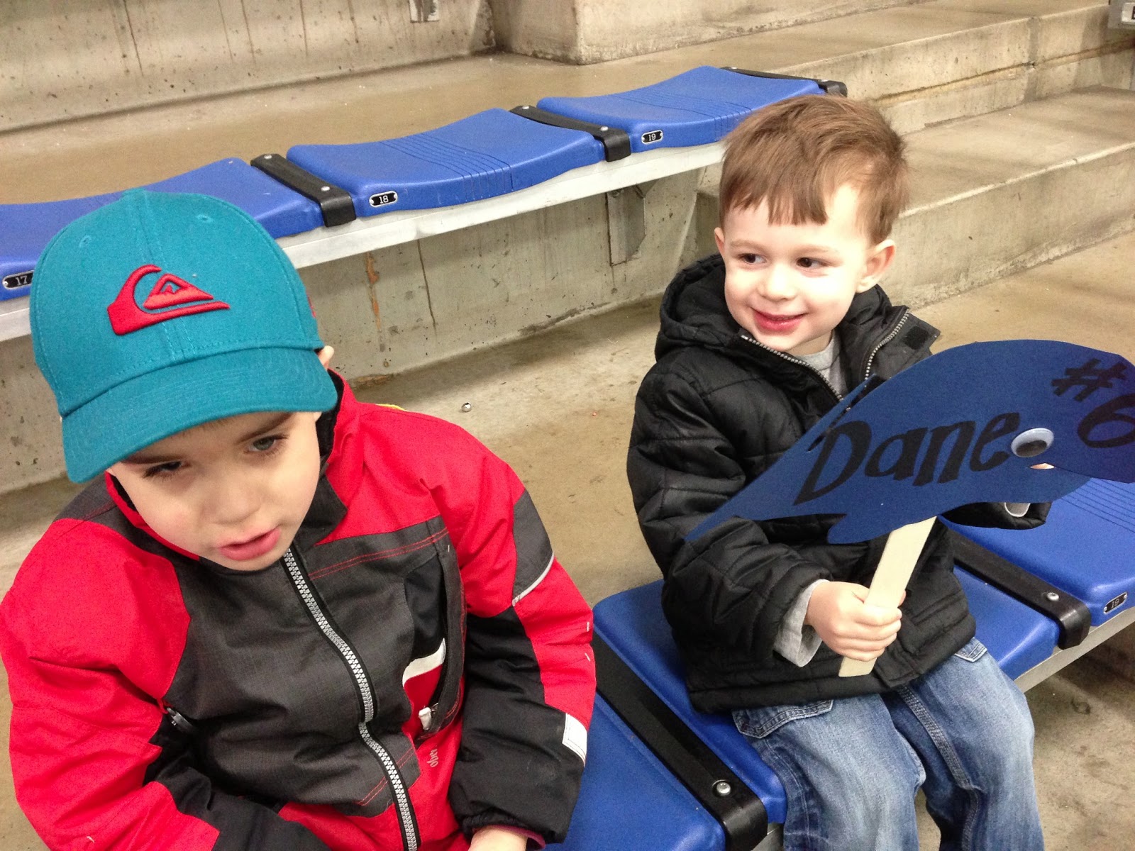 Cruz and Erik cheered on Dane during a hockey game. Both of these kids have encouraging hearts, so it was fun watching them get excited for Dane.
